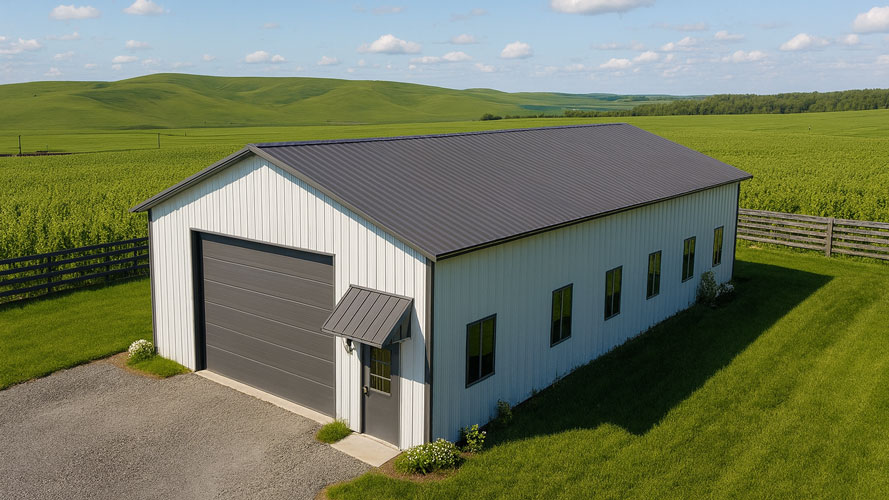 Start your project by customizing the base 30×40 metal building kit package to create a garage that meets your needs for access and functionality.