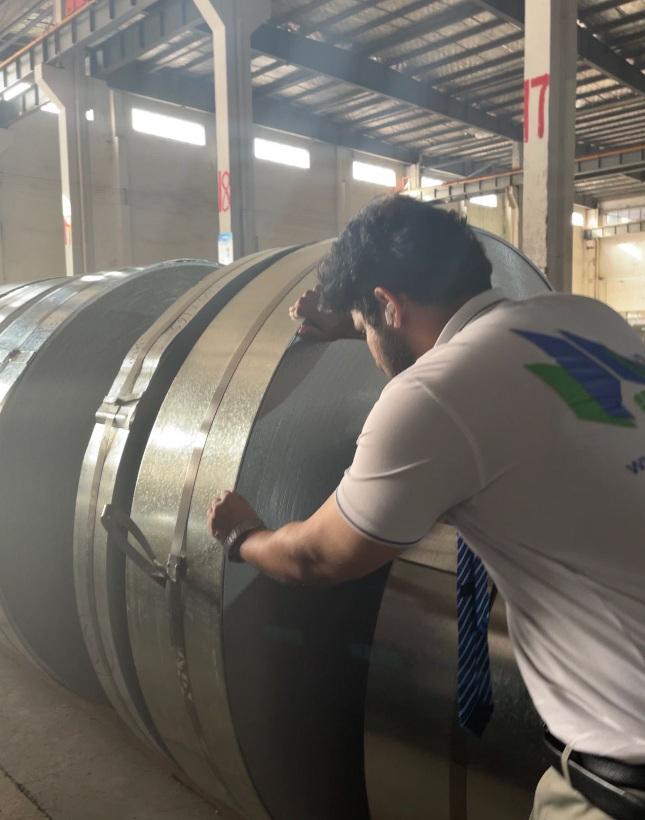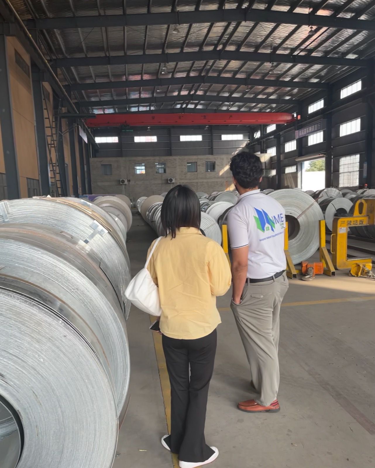We have successfully exported LGS Roll Forming Machines along with 112 tons of galvanized steel coils. The images below show the real inspection process, machine testing, and material verification before shipment.
